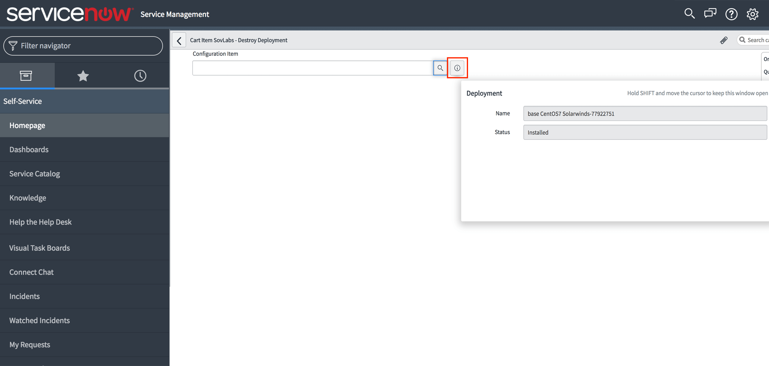 2. Click on any CI created by the SovLabs ServiceNow CMDB module to perform Day2 actions on it