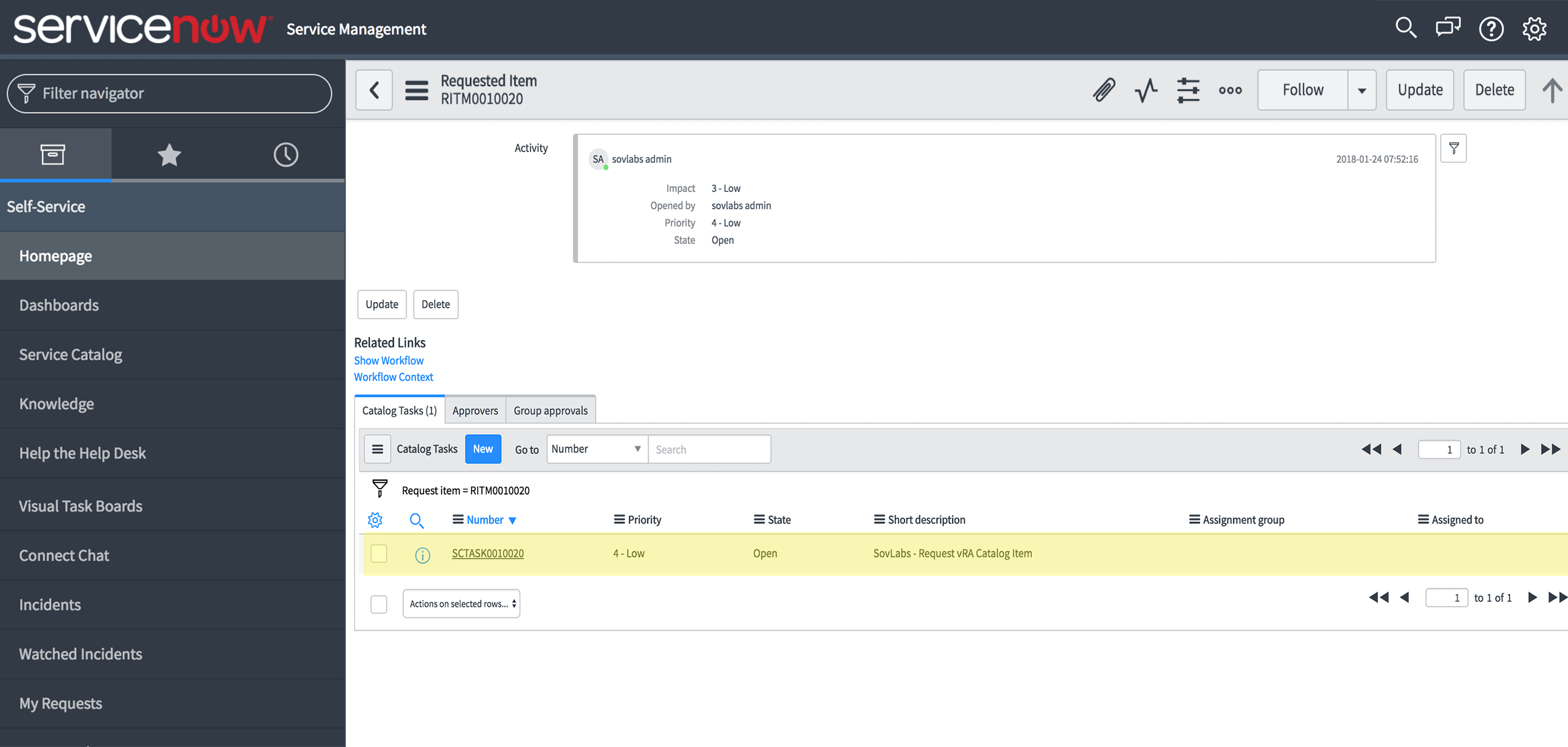 2. In the Request under the Requested Item, there will be a Catalog Task